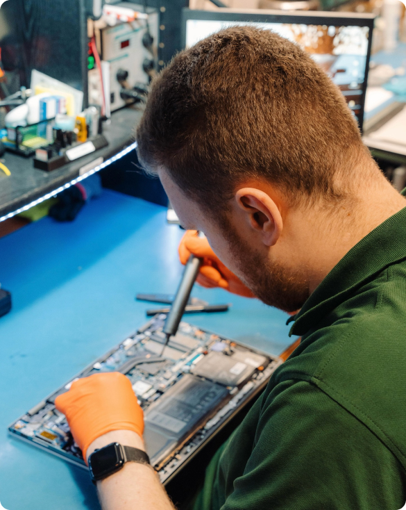 Mateusz działa z precyzją chirurga. iPhone’y i iPady, które inni spisaliby na straty, u niego dostają drugie życie. Liczy się detal, spokój i doświadczenie – a Mateusz ma to wszystko w małym palcu.